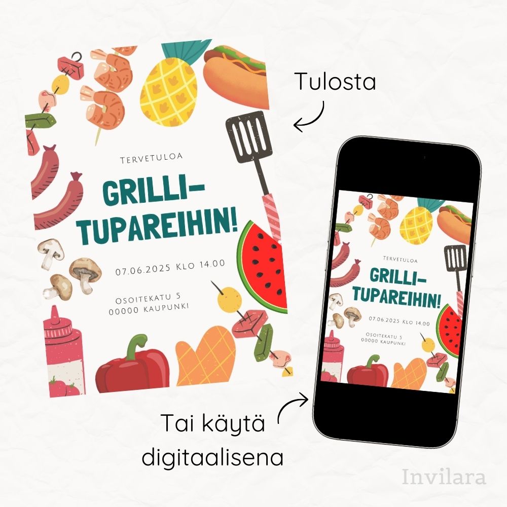 Digitaalinen ja muokattava tuparikutsu grillijuhlat