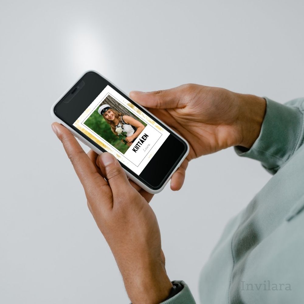 Tämä digitaalinen valmistujaisten kiitoskortti on täydellinen tapa kiittää läheisiäsi siitä, että he olivat mukana juhlimassa suurta päivääsi.